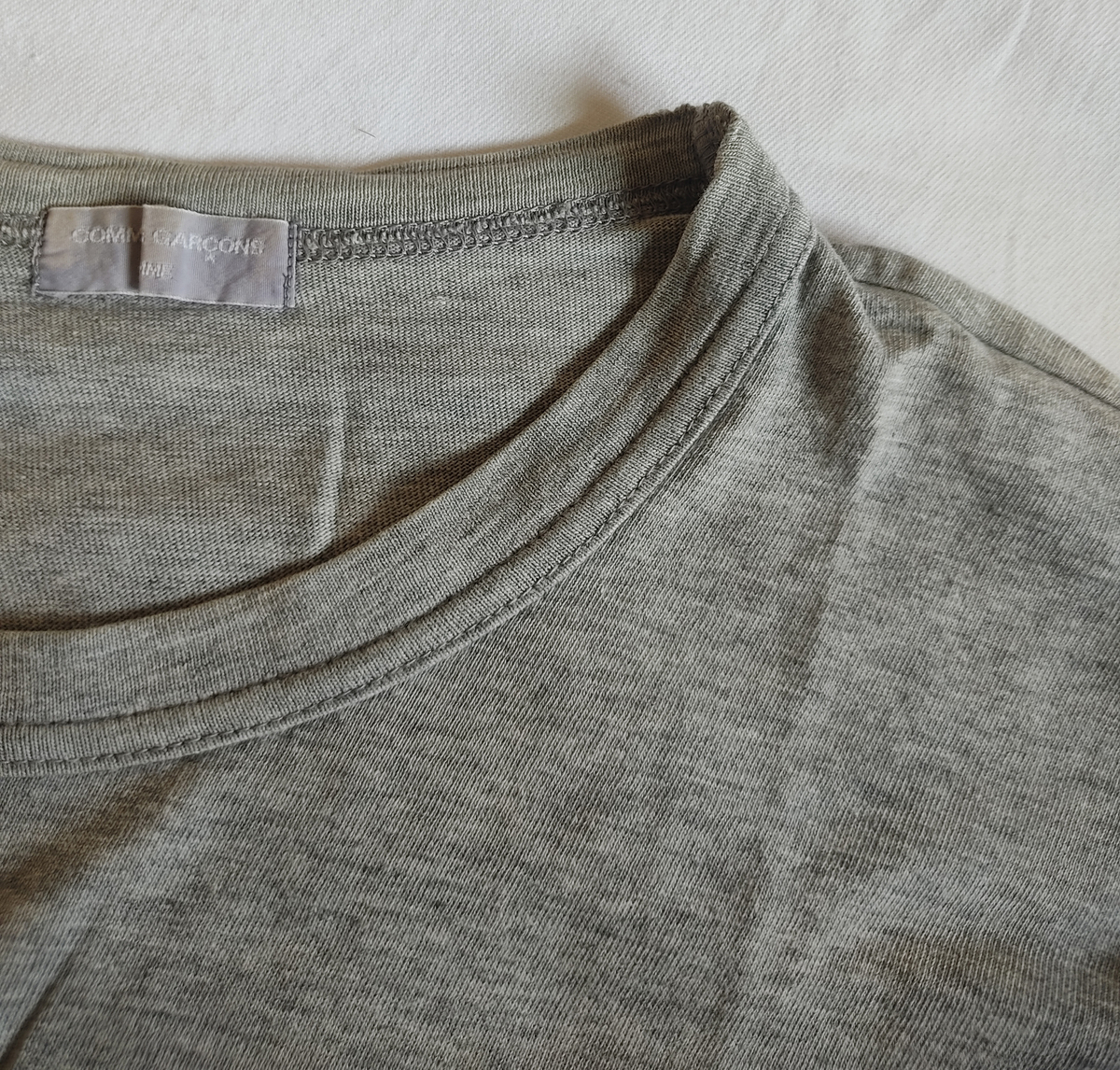 グレーのタグ。田中啓一がデザイナーを務めていた頃のコムデギャルソンオムのTシャツです。