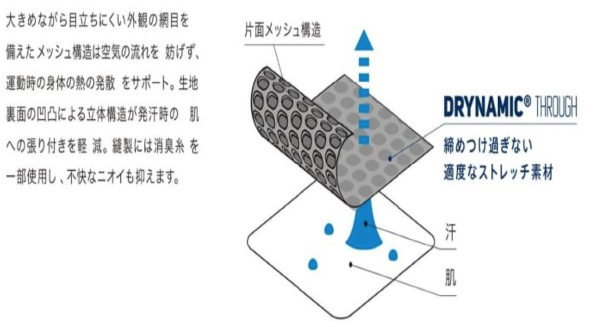 が、Amazonの商品説明にも記載されているように、上に吸汗速乾のレイヤーを着用することが前提のよう。