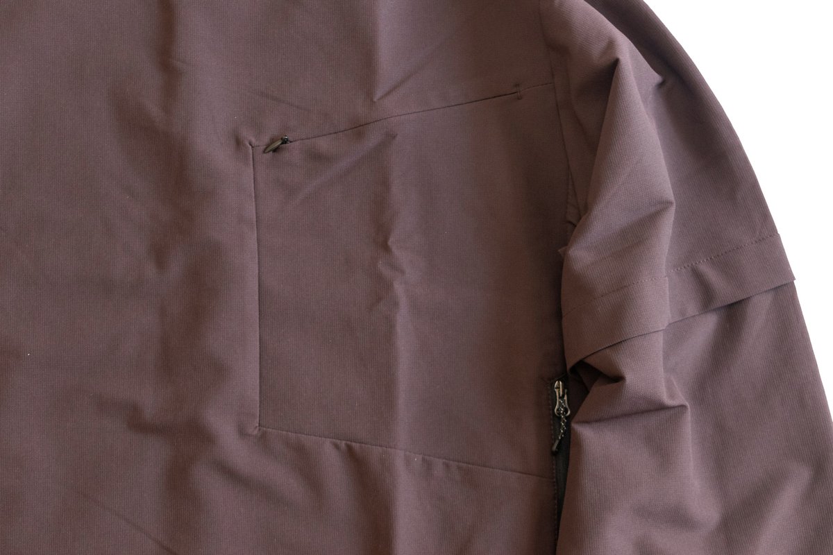 胸元にはアクティブシーンで嬉しいジップポケット。スマートフォンや鍵などを入れるのに最適です。