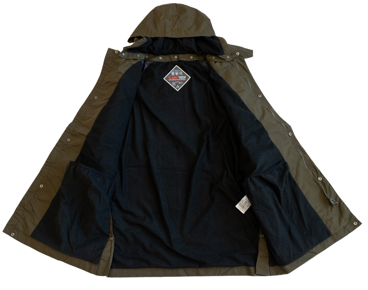 「フレイムテック2WAYウォームマウンテンレインパーカー」は、オーセンティックなデザインながら、フレイムテックの防融機能、そして大雨にも耐えられる耐水圧10,000mm、透湿度20,00g/㎡/24hというワークシーンだけでなく、アウトドアなどでも重宝する高い機能性を実現。