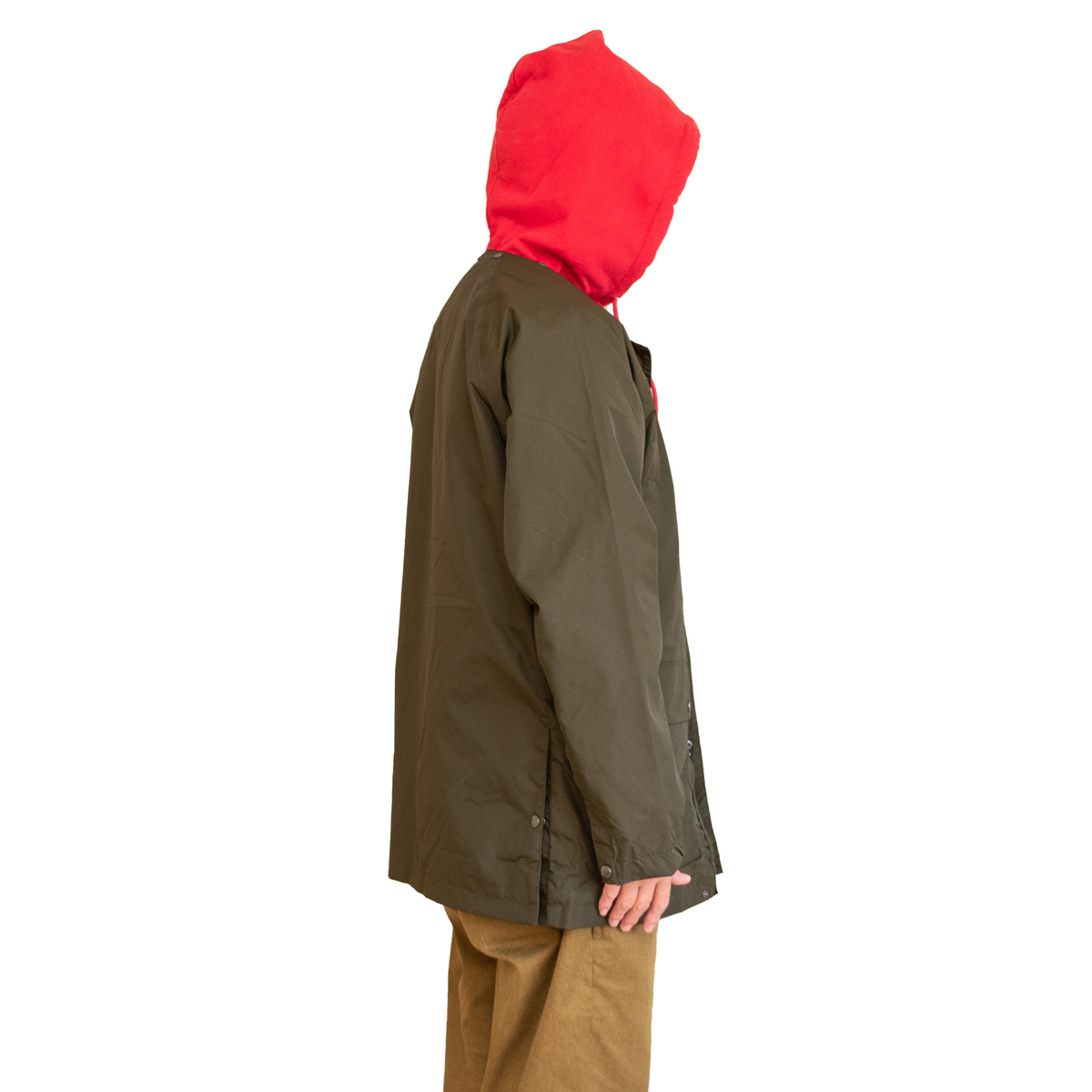 また、こちらの付属のフードも付けられるようになっています。つまり、コーデュロイ襟、フード、ノーカラーの3WAY仕様。