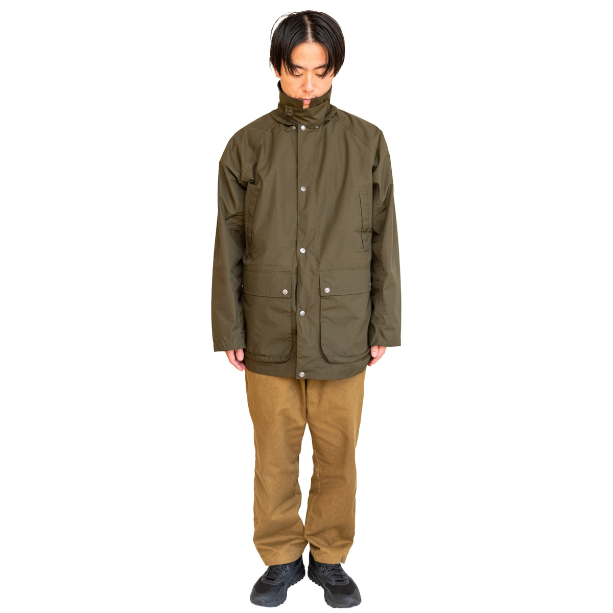 「フレイムテック2WAYウォームマウンテンレインパーカー」は、バブアーの看板商品であるビデイルのデザインを参考にしています。
