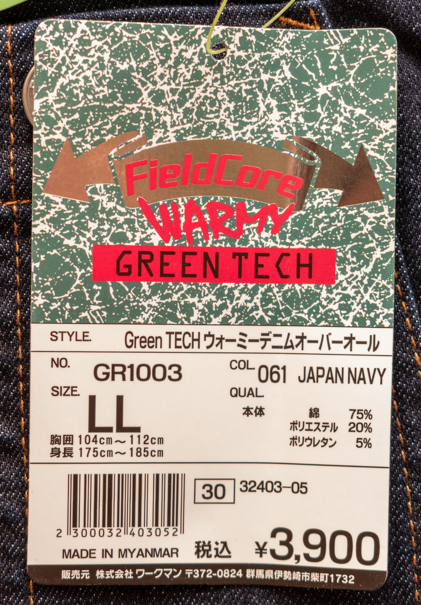 ワークマン×山田耕史「グリーンテック ウォーミーデニムオーバーオール」のお値段は3,900円(税込)。
