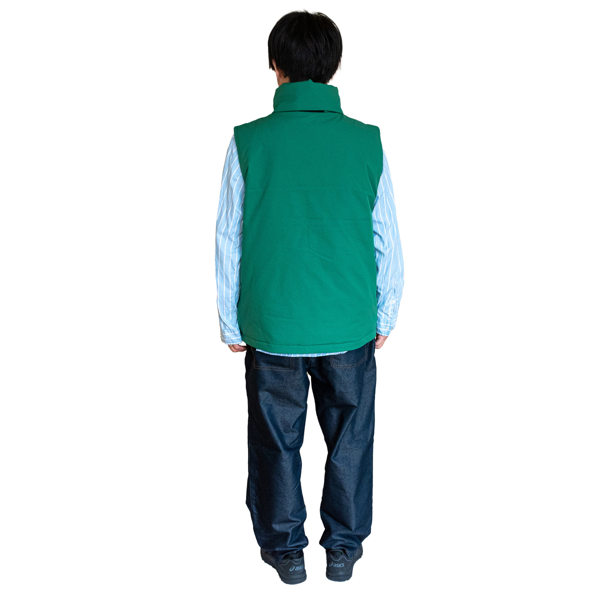「アウトドア系のベストも検討しましたがどうもロゴが邪魔で」