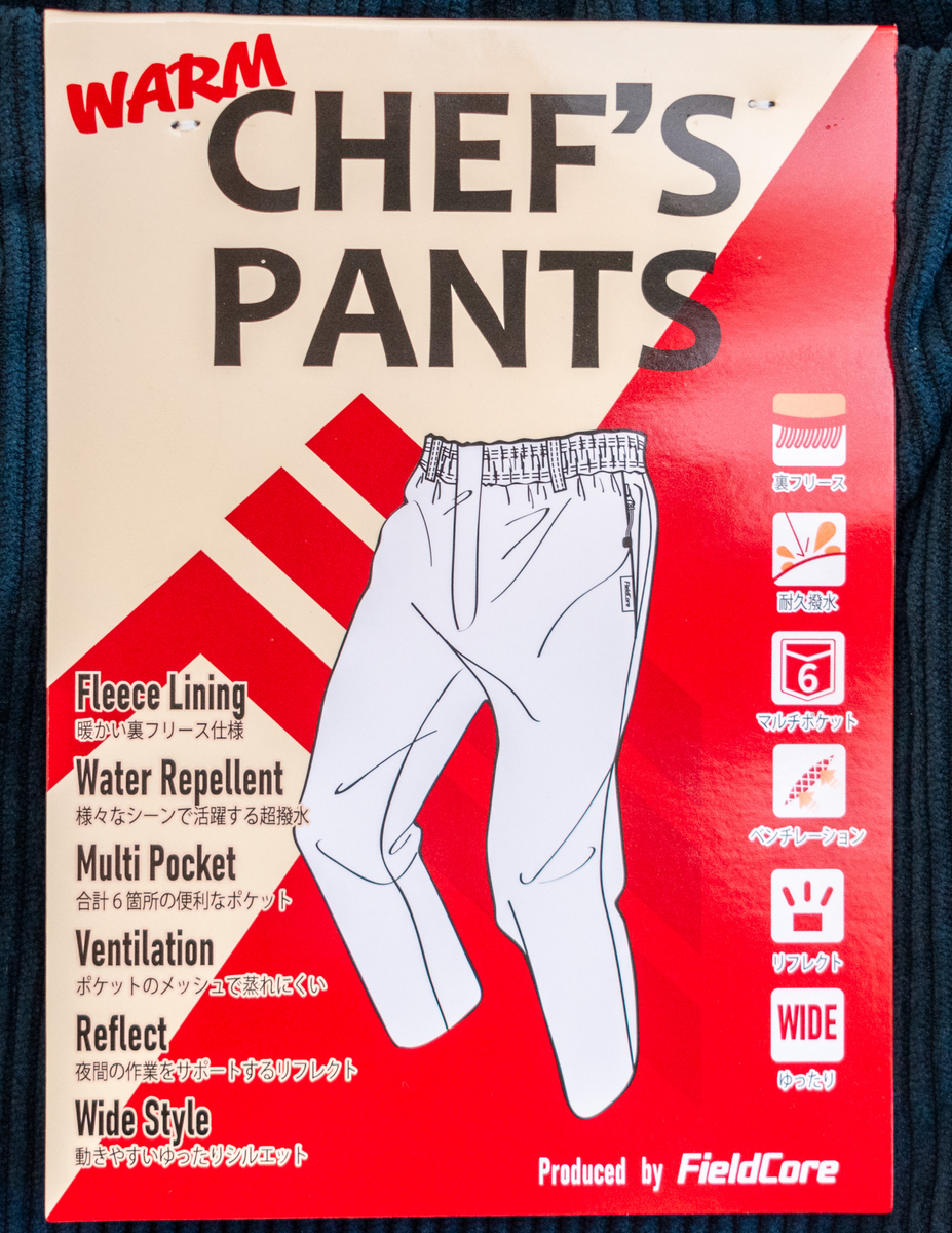 最後はワークマン×共同開発「超撥水ウォームシェフパンツ」。詳しいレビューはこちらの過去記事ごご参照下さい。