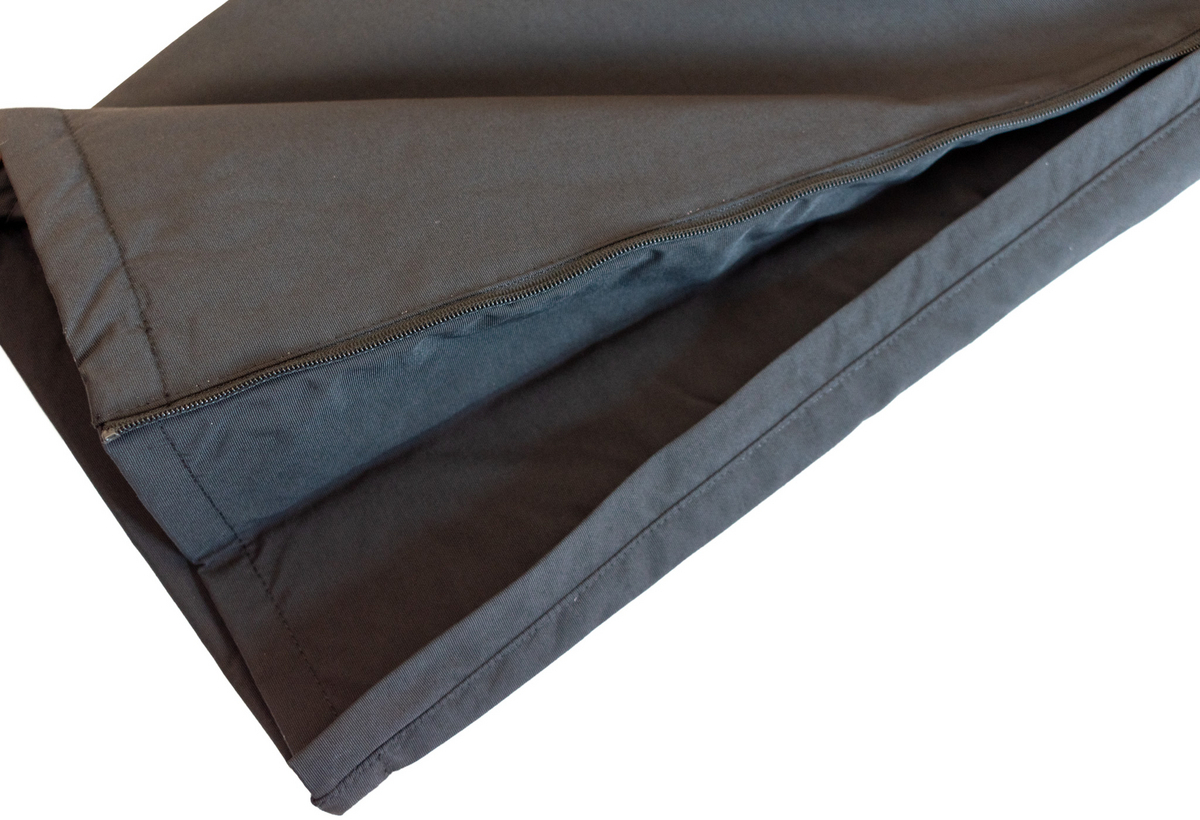 さらに、両サイドがジップで全開できるので、パンツを穿いた上からそのまま重ね着が可能です。