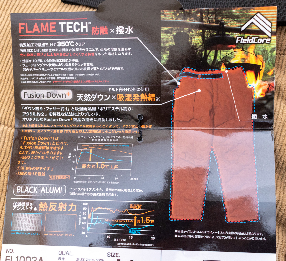 防融加工で安心度が高い「フレイムテック洗えるフュージョンダウンモンスターパンツ」